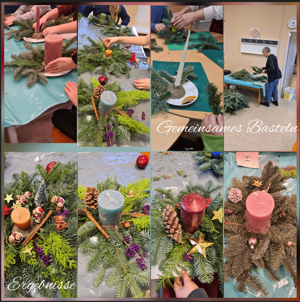Am 26. November 2025 war es soweit: Gemeinsam mit allen Kindern, die mitmachen wollten, haben wir Adventsgestecke gebastelt und dabei sind wahre Kunstwerke entstanden!